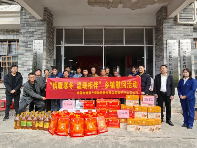 新春将至,暖意先行。近日,中国大地保险南宁中心支公司走进南宁市邕宁区那楼镇,开展“情暖寒冬 温暖相伴”扶贫慰问活动,以实际行动践行保险企业的社会责任,为当地困难群众送上冬日关怀与新春祝福。那楼镇党委副书记、镇长赵永华,镇党委统战委员、副镇长潘晋文,中国大地保险邕宁支公司经理施瑞珍、南宁中支农险部经理李鑫参加此次活动。