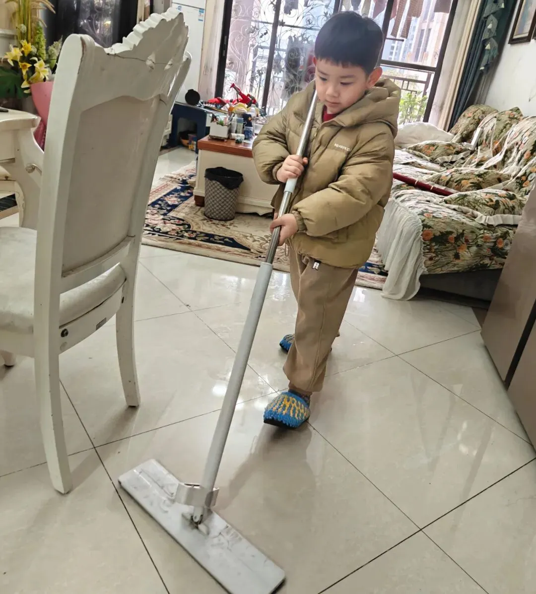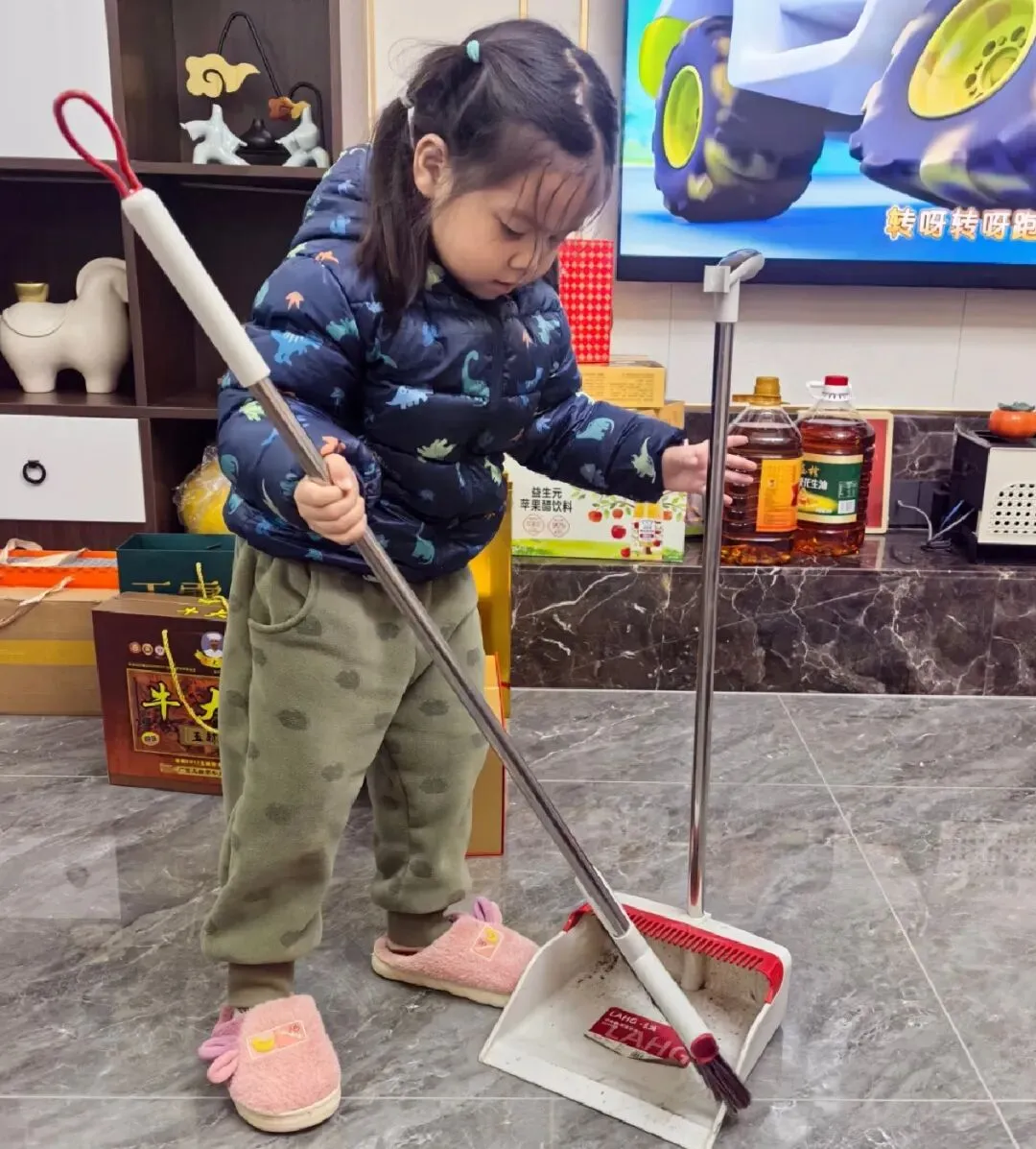 在春节习俗实践中,孩子们与家长一同洒扫除尘,在劳动中体会“除旧布新”的意义;