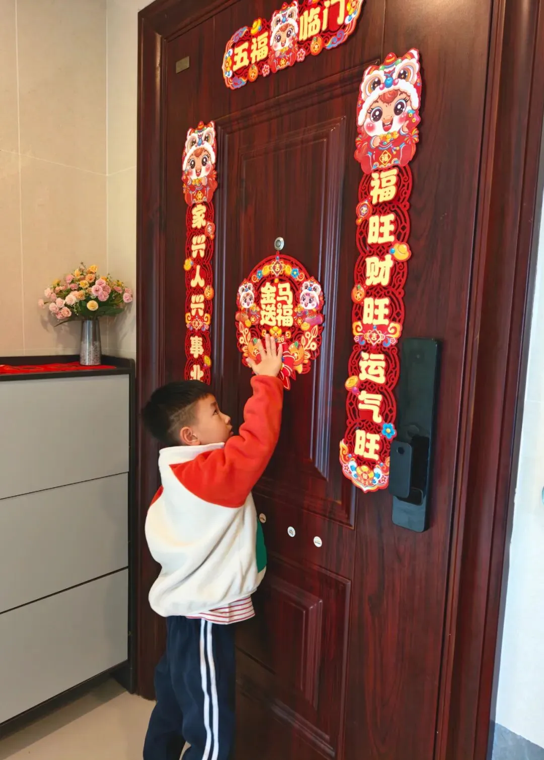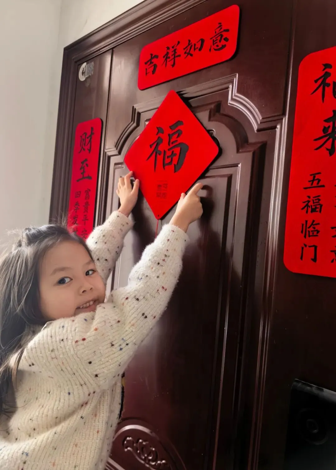 孩子们用天真活泼的语言表达对春节的理解——“贴春联就像给家门穿新衣服”“年糕是步步高升的象征,年粽寓意‘年年中’,糍粑象征团圆甜蜜”。家长们也以此为契机,为孩子们讲述“年”的由来、“福”字的深意和压岁钱的传统内涵,使文化传承在温馨的亲子互动中自然生根。
