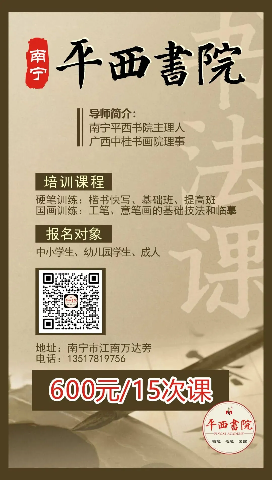 南宁平西书院招生(硬笔、毛笔、国画)