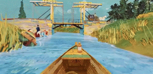 戴上VR眼镜,我独自坐在一艘小船上,漂在罗纳河上。梵高的星空在头顶旋转,岸边的灯火倒映在水中。