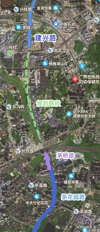 其次,建兴路继续向南可衔接茶花园路东延长线,从而直抵东葛板块,进一步拉近了兴宁区与青秀区的通勤距离。