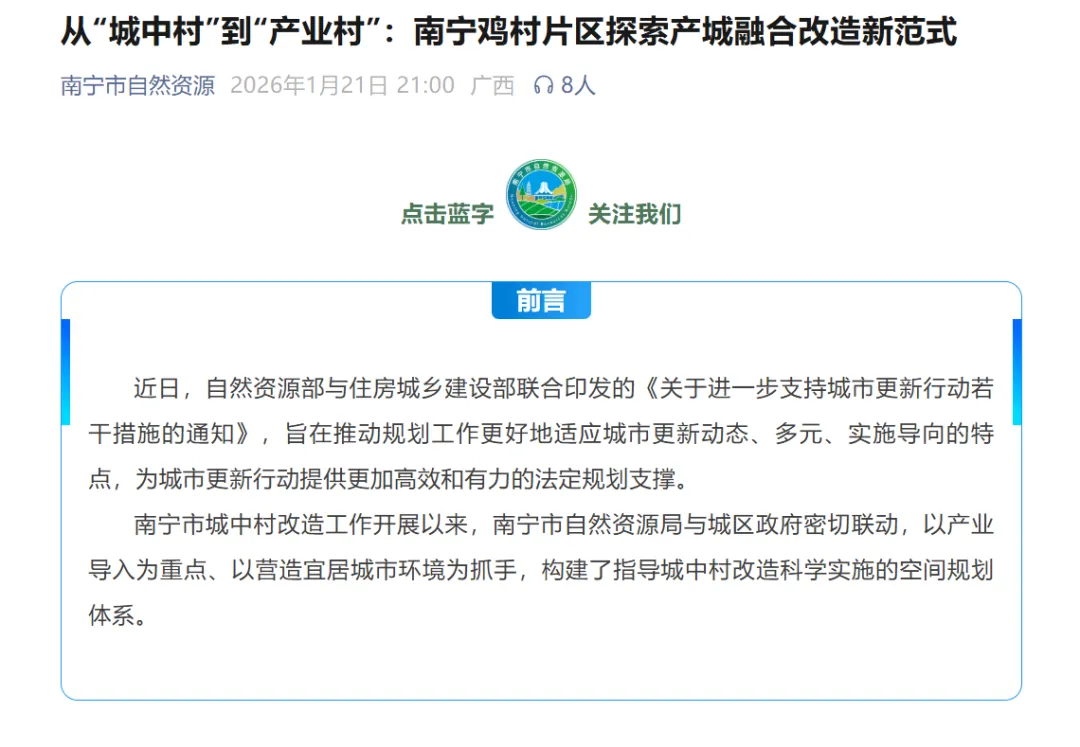 1月21日,南宁市自然资源局发布重磅文章,涉及鸡村旧改规划。