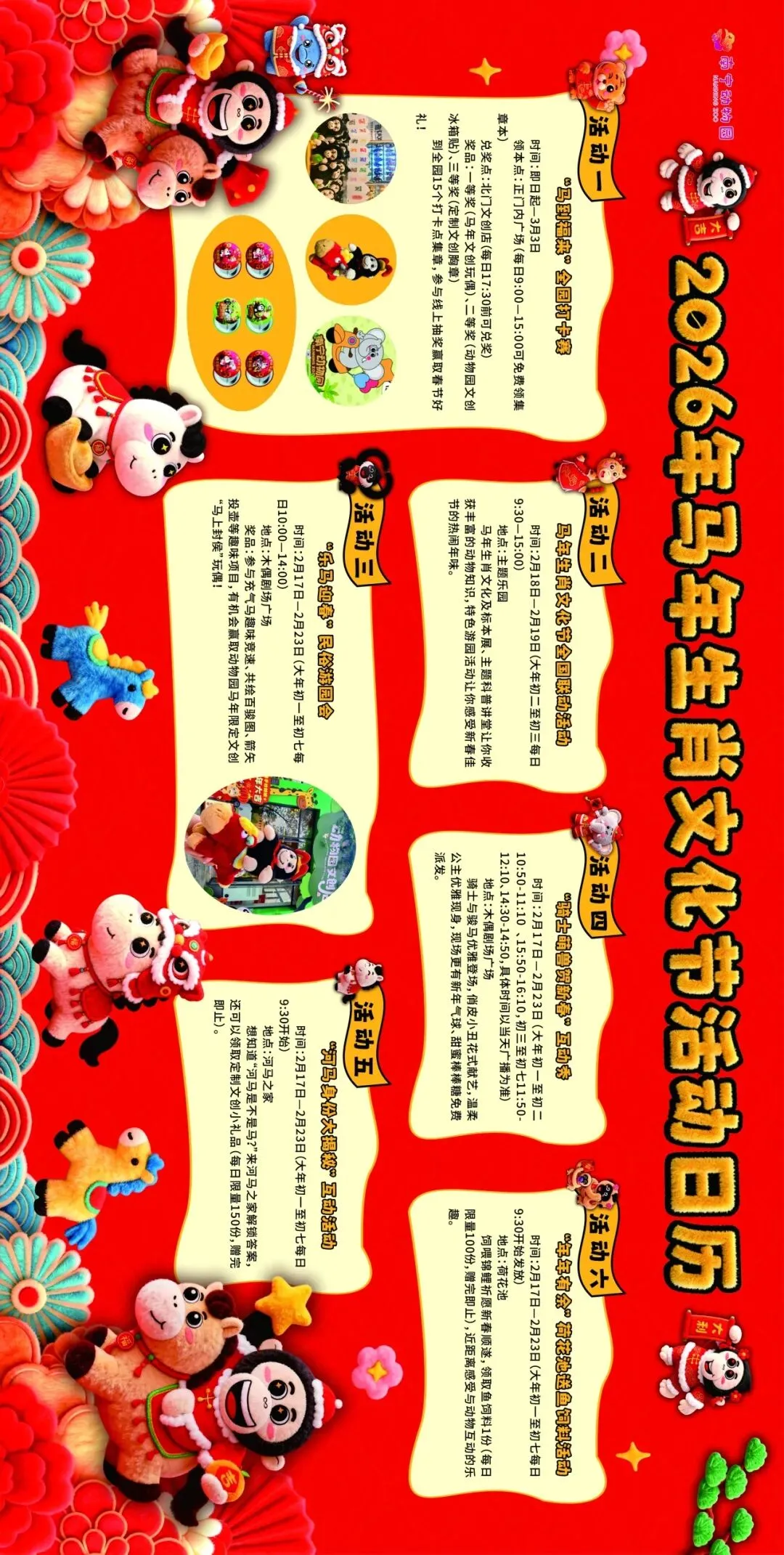 春节期间马年生肖文化展、集章打卡、特色游园等活动同步开启,更有春节好礼赠送,沉浸式感受马年年味,get马年好彩头。