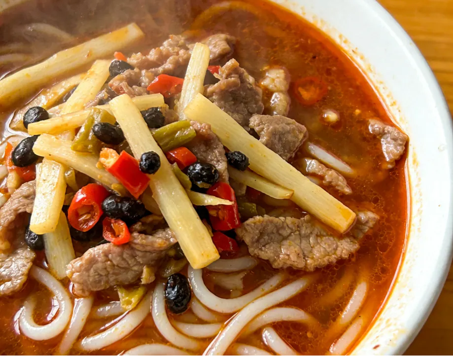 海洋湾美食广场的老友粉、牛腩粉,虎啸山林综合服务点的干捞粉、烧鸭粉,火烈鸟餐厅的螺蛳粉,酸笋够劲、米粉爽滑,还有大熊猫商业中心的酸野,一口解锁广西各色米粉的口味。