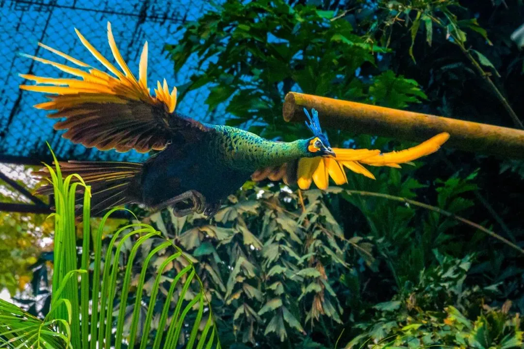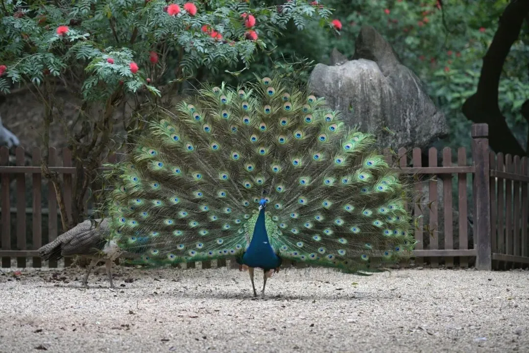 长臂猿、熊狸、巨嘴鸟、美洲红鹮、绿孔雀、兔豚鼠、海狸鼠等特色动物齐聚一堂,尤其是会“唱山歌”的长臂猿,叫声清脆,更有机会看到“孔雀东南飞”。