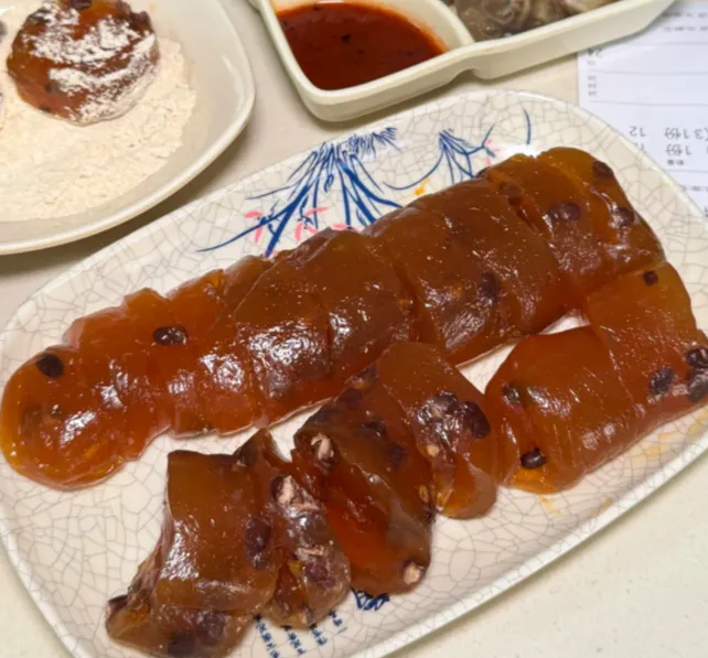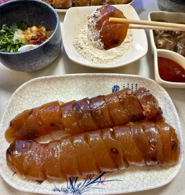 店里还卖土笋冻,不过经常卖完,想吃的话得碰运气。土笋冻这东西在闽南那边挺有名的,没吃过的人可能会觉得挺好奇。