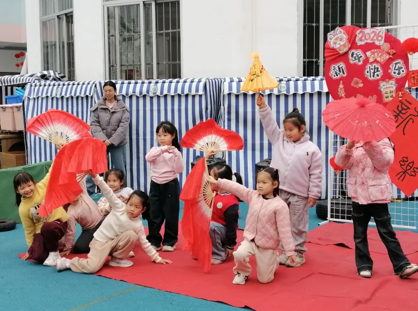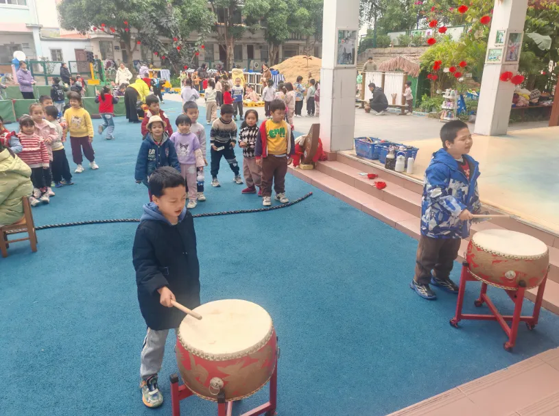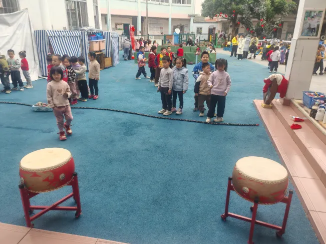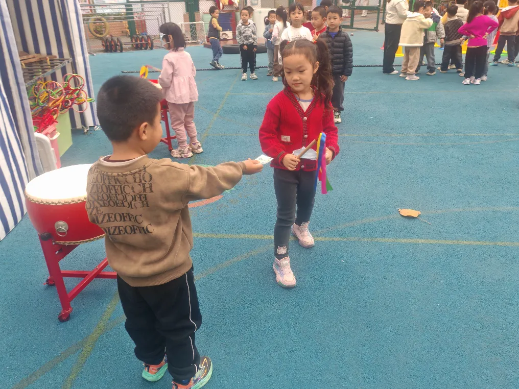舞台表演的幼儿进行了舞龙舞狮的表演,场面非常热闹,赚到钱了又马上想着去买东西了