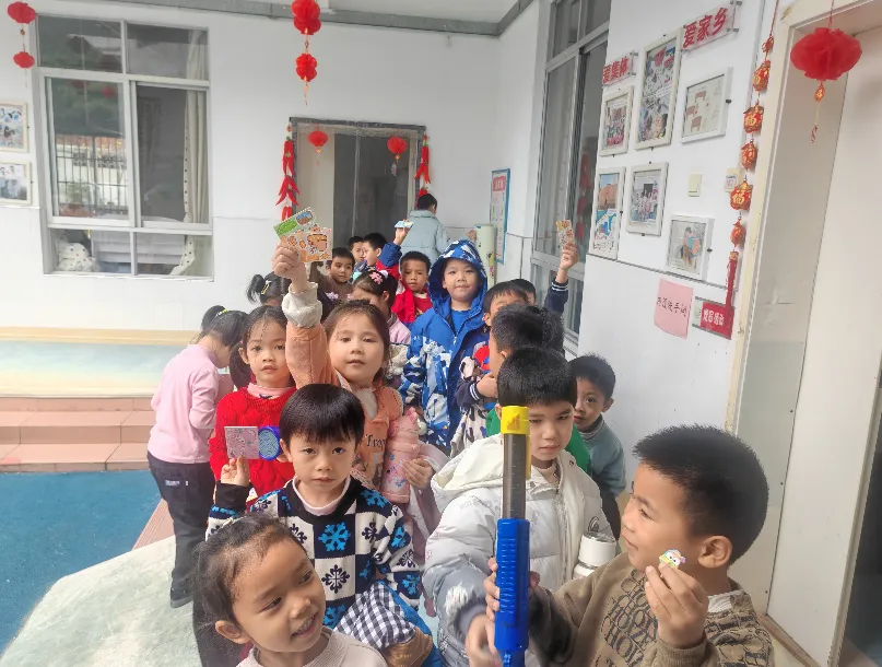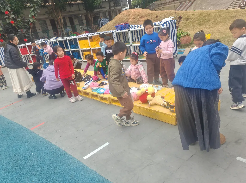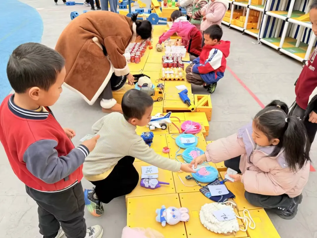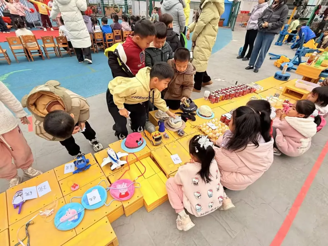 于是卖年货那里,买到的物品也可以带回家,那里聚集了一堆买东西的幼儿,大家都开心的去选购喜欢的物品。