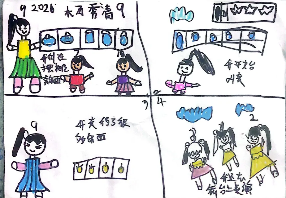 舞台表演更换到了更宽的地方,设置了检票口。节目单吸引了不少观众,台下幼儿纷纷鼓掌喝彩。表演结束后,观众用游戏币投票,得票最高的小组获得了“最佳表演奖”。