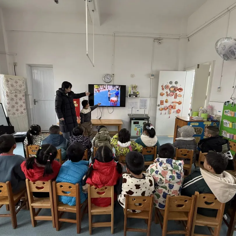 通过回顾,幼儿自己商量解决游戏问题,用口罩来代替红领巾进行蒙眼击鼓,这样可以提高速度,同时把场地换到宽敞一点的地方,这样可以避免拥堵。买年货的地方可以投放剪纸和折纸材料。舞台节目单一的问题,可以进行演员的招募,每个班要主持人来报节目,有唱歌、跳舞、小品等,表演节目还可以赚钱,提高幼儿的积极性。