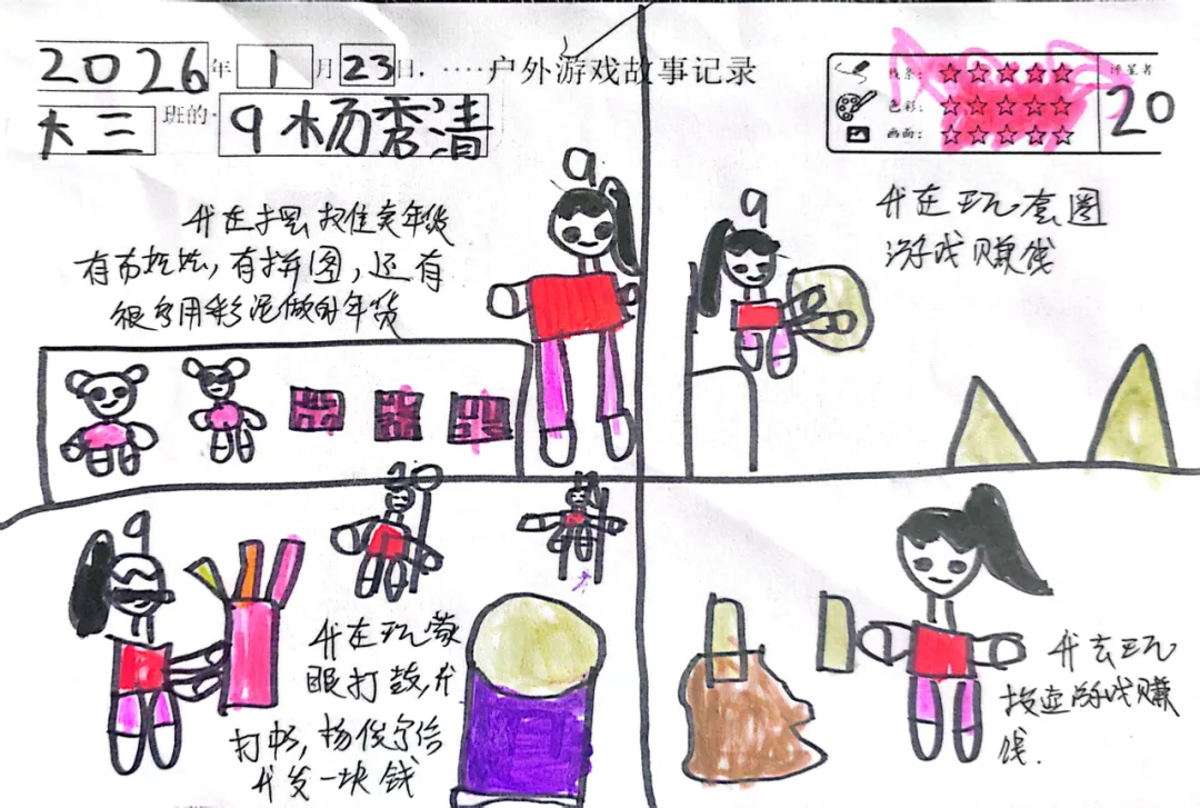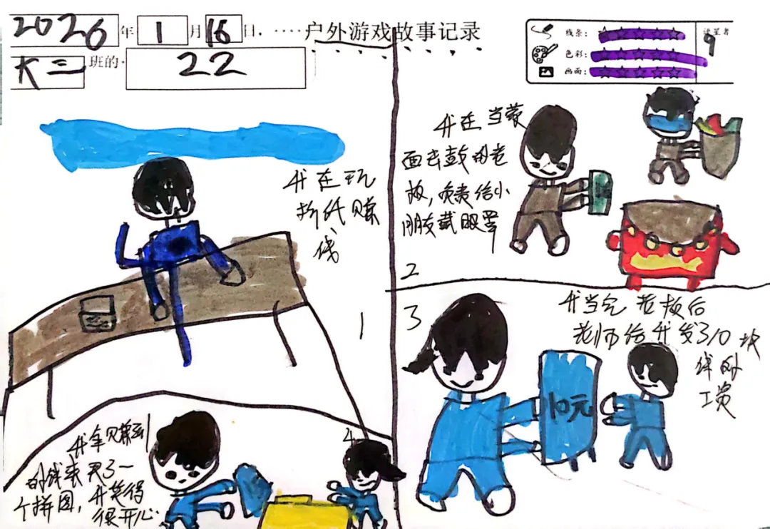 本次游戏中,幼儿在人民币兑换、合作沟通方面有了明显进步,能熟练进行10元以内的找零,主动与同伴协商解决问题。互动也更自然,大班幼儿的责任意识和自信心都得到了提升。但部分幼儿过度沉迷单一游戏的问题,反映出游戏的吸引力不均衡,后续需要进一步优化区域设计,确保每个区域都能充分调动幼儿的参与积极性。
