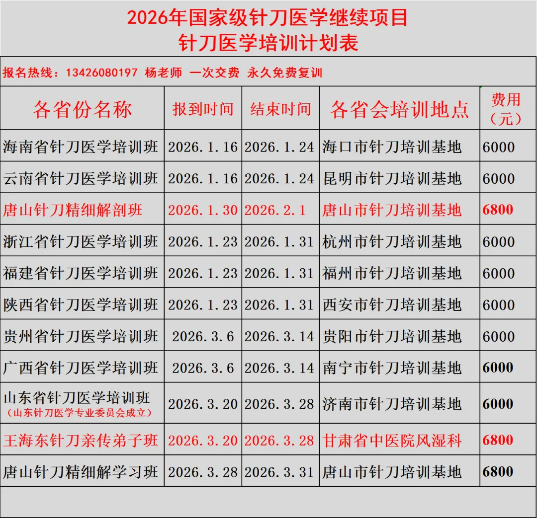 2026年全国针刀医学培训 计划表