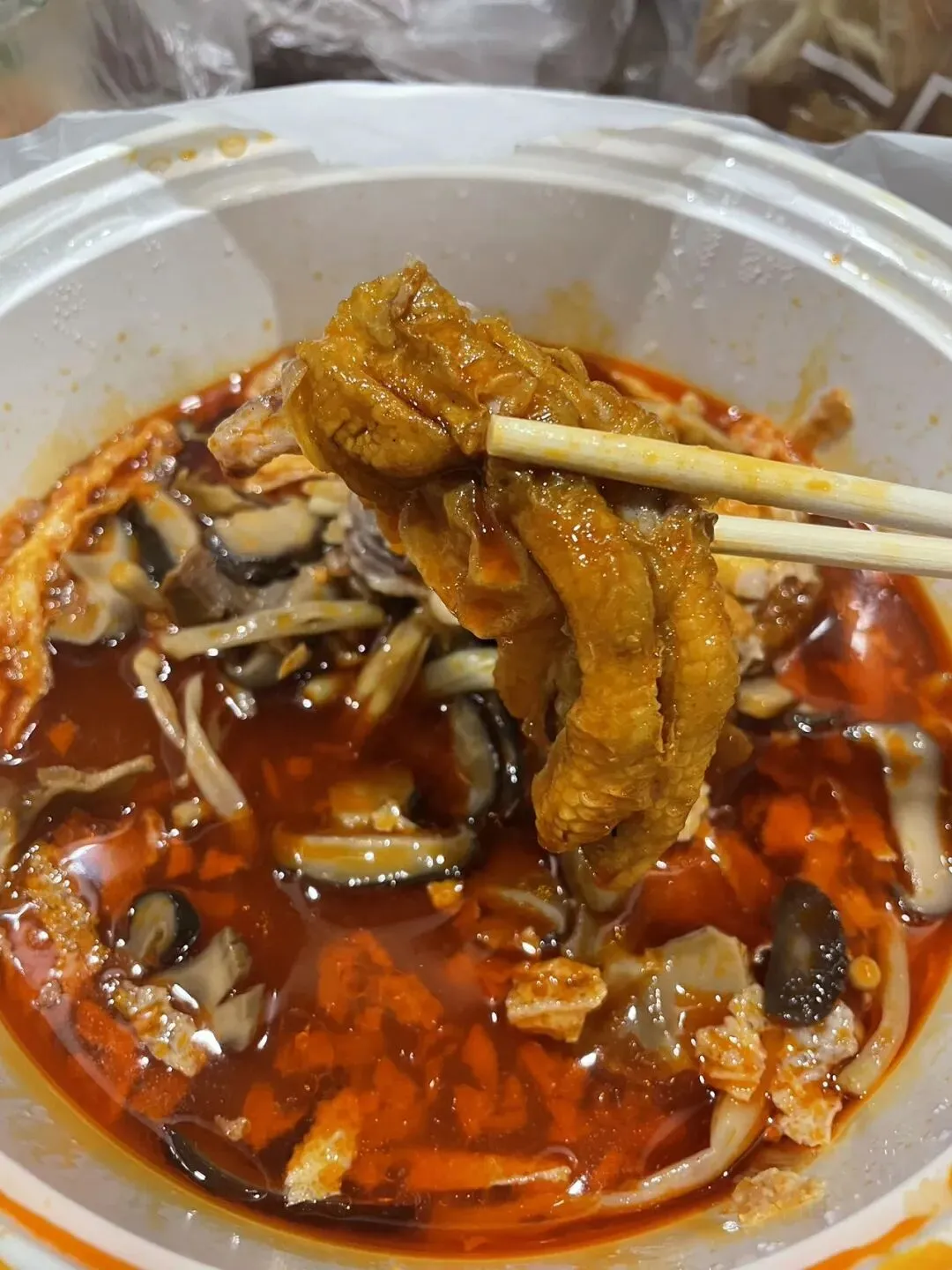 招牌鸭脚就更不用说了,超级软糯,一抿即脱骨。表面浮着的那层辣油,看似通红实则一点都不辣,反而又香又开胃。