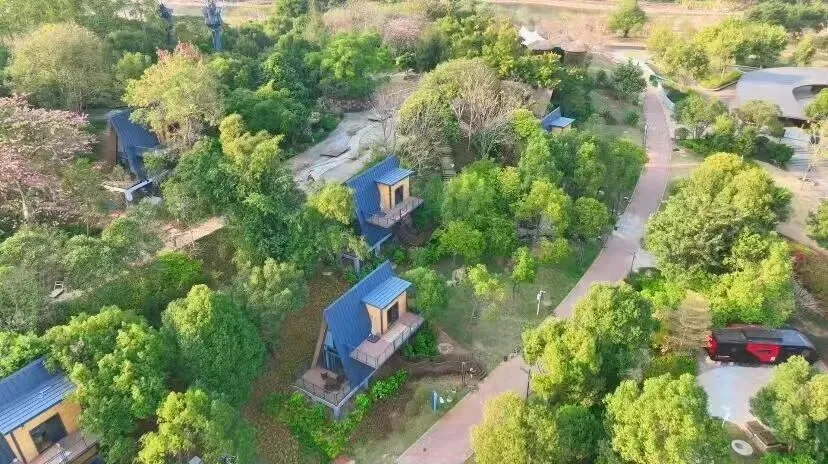 园区特设休闲木屋、未来太空舱、