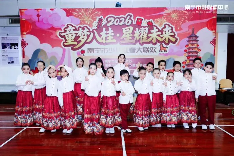 为登上 2026“童梦八桂・星耀未来” 南宁市少儿迎春大联欢舞台,小记者小主持们刻苦排练,老师们在候场区悉心指导每一个表达细节。最终,小记者们身着整齐服装,在舞台上自信绽放,以饱满的状态完成表演,用努力与实力诠释着对表达的热爱。