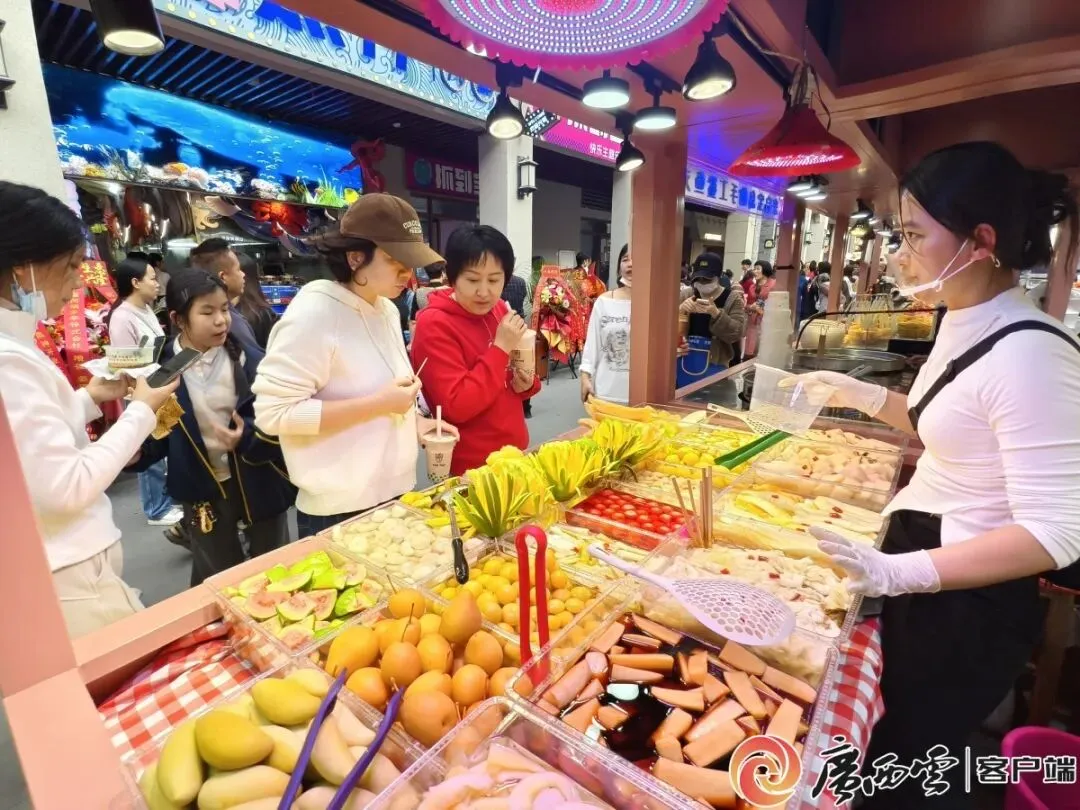 广东游客邓子豪和同事驱车12小时,从江门直奔南宁。第一顿就把中山路上的老友粉、黄皮酱卷筒粉等小吃尝了个遍,“从美食开始了解一座城市,很对味。”
