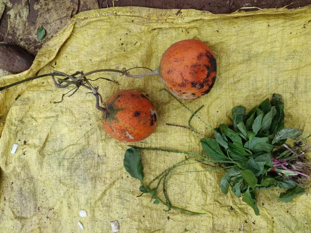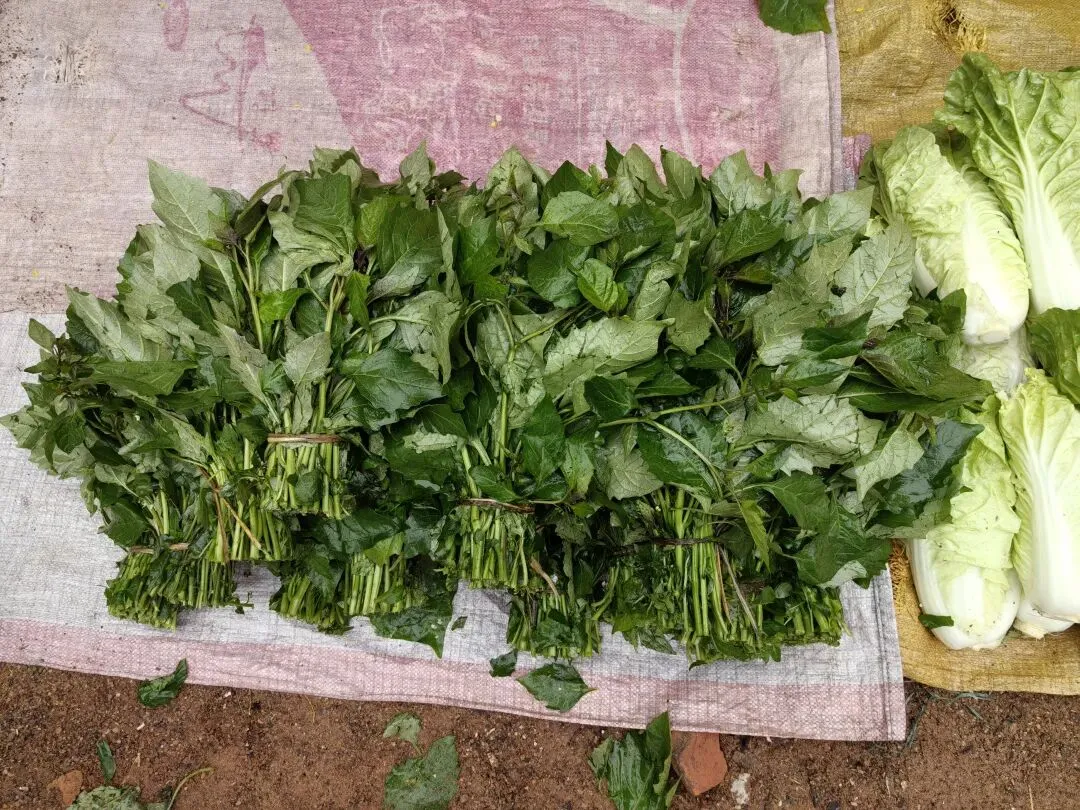 我站在桥上拍的,过了桥就是目的地了,当地居民在河边种了好多菜。我最喜欢逛这种地摊集市,不少是摊主家自己种的,每次去能买到的东西可能会不同。