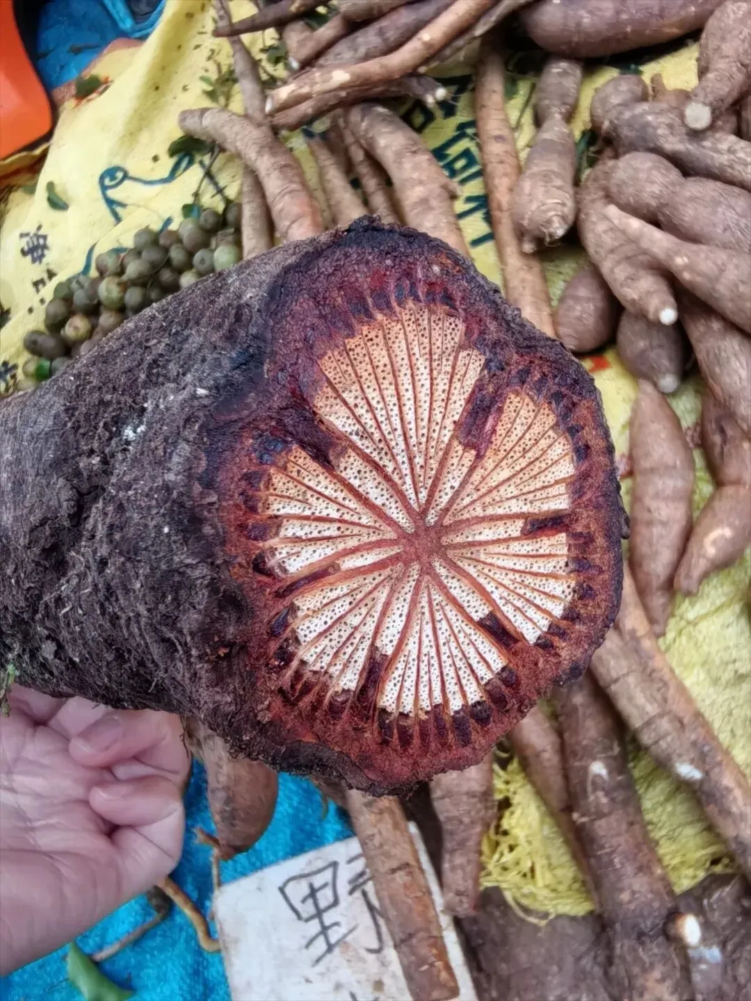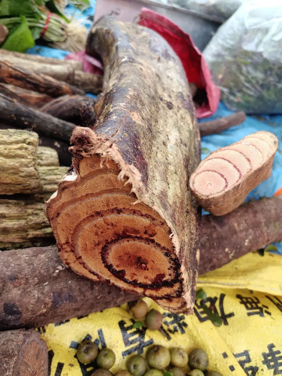1)大血藤,茎的横切面太好看了吧,简直就是艺术品,见一次喜欢一次。摊主是一位姐姐,人超好的,随便我拍,还为了方便我拍而去帮忙摆出最佳的角度。