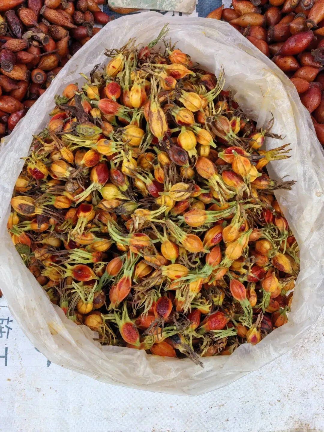 2、菜市场不仅卖吃的,还有很多药材摊,我不懂“药”,所以只敢拍,不敢买。在本文的分享里,也是侧重关注植物本身: