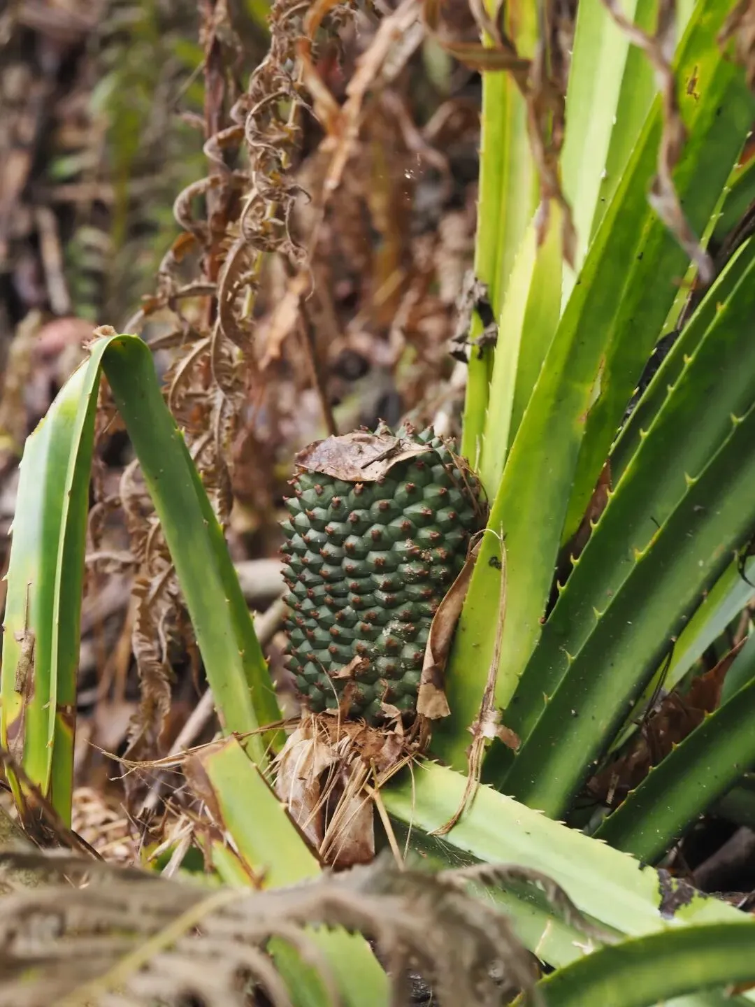 8)露兜草 ,叶子两边和叶背中间各有一道刺,在山中行走最害怕遇到它这个“拦路虎”,一不小心就划伤了胳膊。它的果实真有这么神吗?我看看就好。