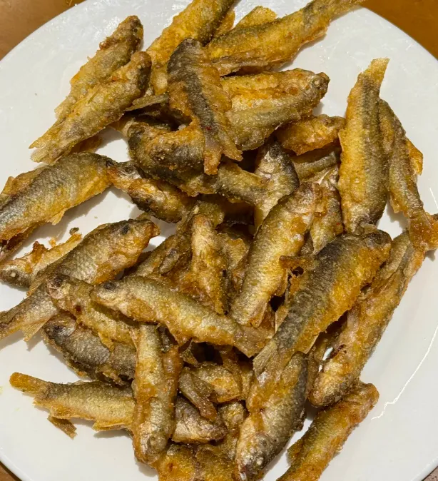 【香煎明仕河鱼】选巴掌大的河鱼,不去鳞,那是精华。油温七成热,鱼滑进去,别急着翻,听见“滋啦”声变小了,香味飘出来了,再翻面。炸到两面金黄,撒点葱花姜丝,不用复杂的酱料,鱼本身的鲜甜就够了。咬一口,酥到骨头里,连刺都能嚼碎。