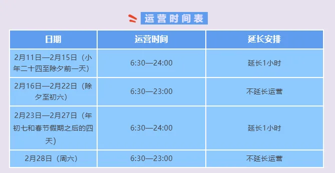 为做好2026年春运及春节假期运输保障工作,助力乘客返乡返城,南宁地铁将在春运春节返乡返城高峰时段延长运营时间,具体如下: