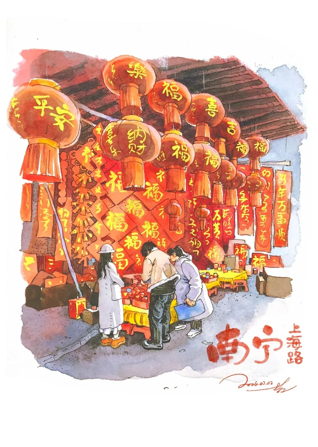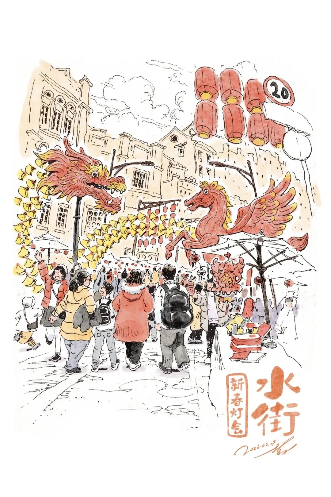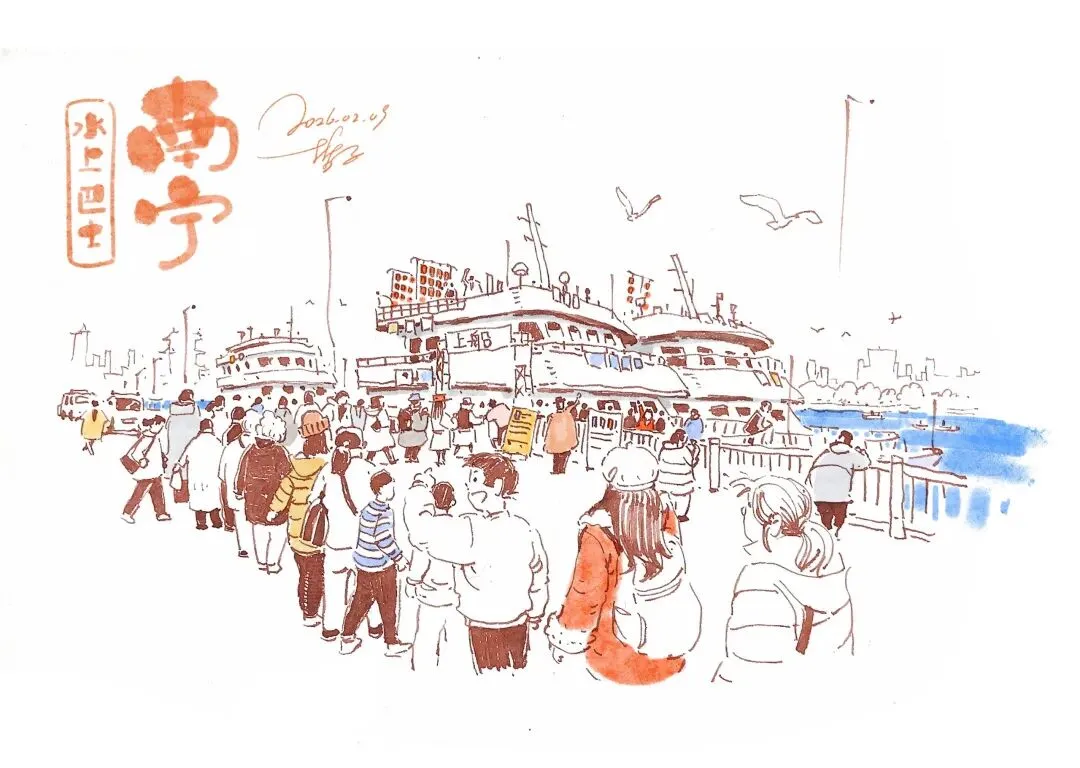 2月7日,嗨南宁头条发布《重生之我在南宁中山路摆夜市摊》一文,评论区里出现了一个网友ID@哲子,用当晚中山路插画作品,图文回复:“今晚写生” 。嗨仔真的挺喜欢@哲子作品的风格,特别向他约了一组插画,主题就是《南宁迎春故事绘》,希望大家喜欢和点赞。同时,也借此机会给大家拜个年:马年行大运,财源滚滚进!