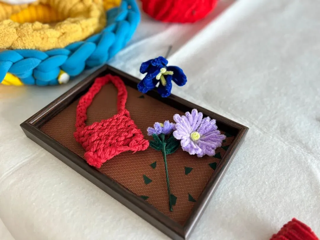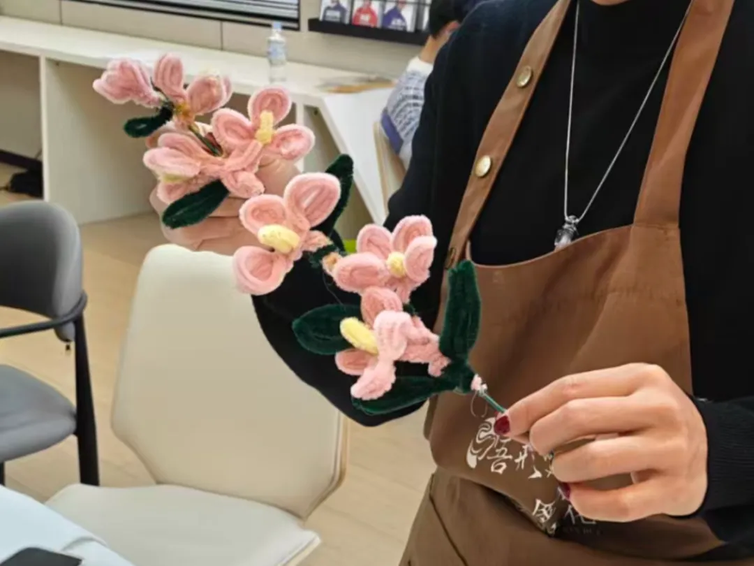 扭扭花束DIY:无需复杂技巧,一根毛茸茸的扭扭棒拧一拧、绕一绕,便开出永不凋谢的花朵。青年们搭配喜爱的色彩,定制专属花束,把浪漫与温柔藏进掌心,无论是自留还是馈赠,都满含心意。