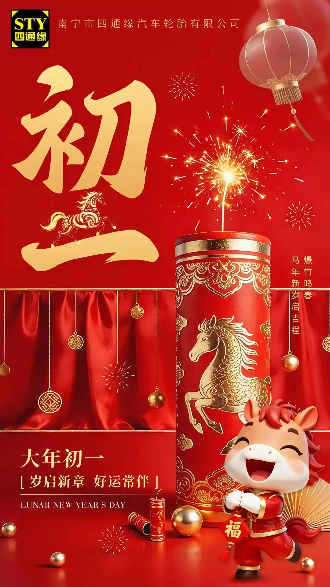 值此丙午马年新春佳节,南宁市四通缘汽车轮胎有限公司谨向全体客户、合作伙伴与四通缘家人们,致以最热烈的问候与最美好的祝愿!