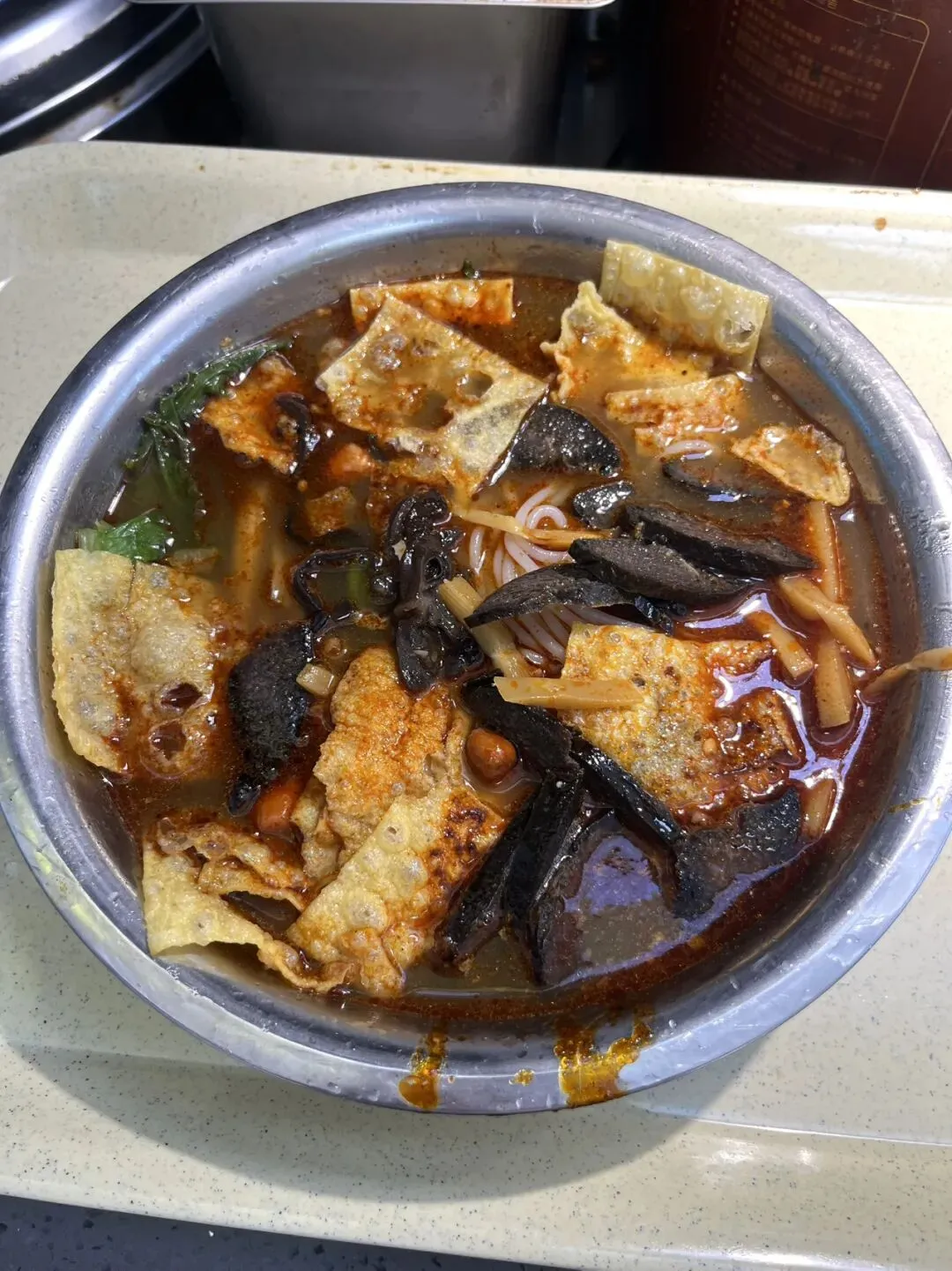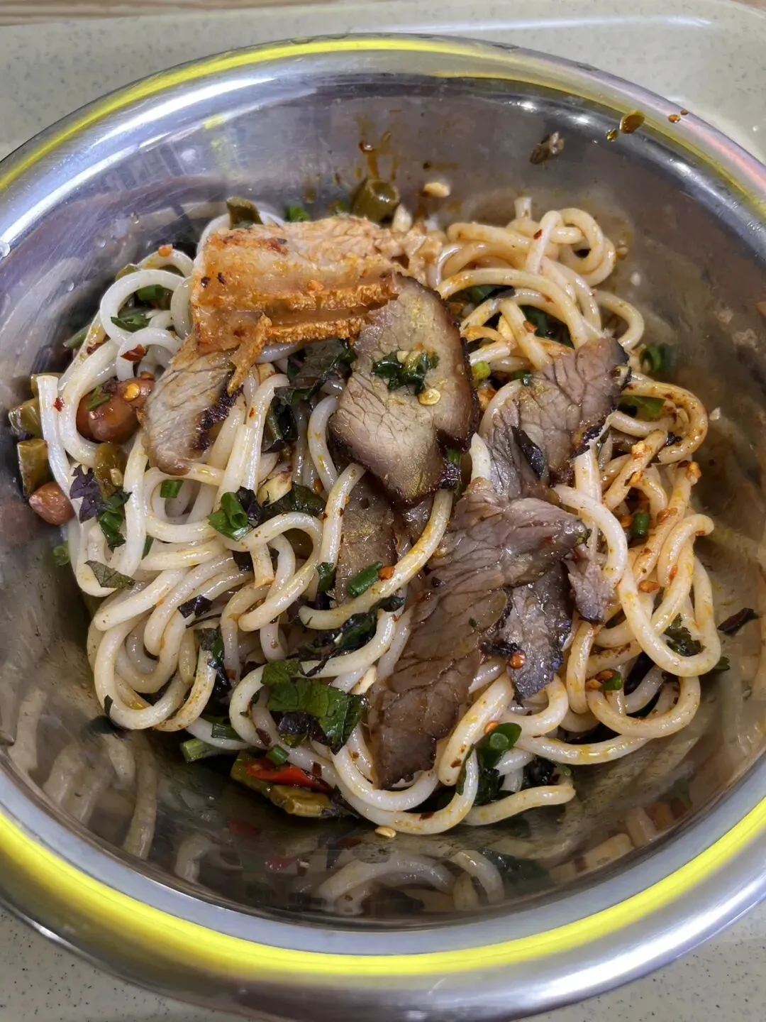 后来发现不是,小料很多放置在灶台前面需要自己加。这一加果然不同凡响,本来这个肉片就好吃,能吃出来的是叉烧和牛肉。老板说有三种肉,但名字我没听清。关键是性价比,这一碗10块钱,有够便宜而且还好吃。