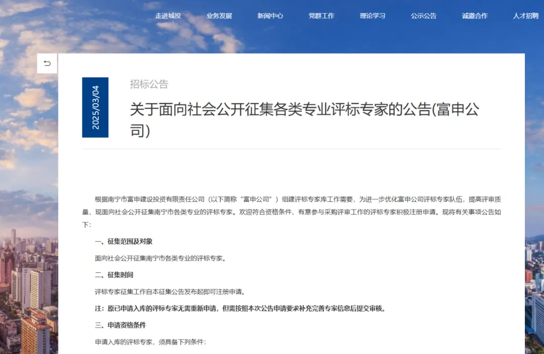 南宁市富申建设投资有限责任公司评标专家