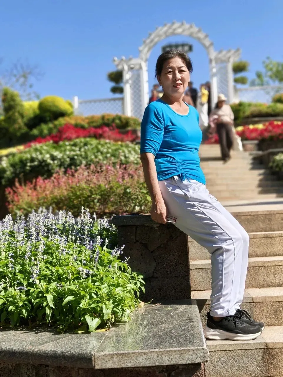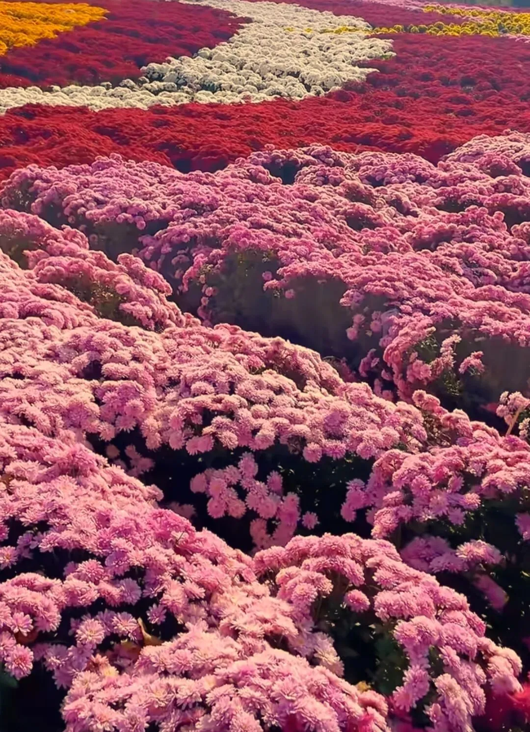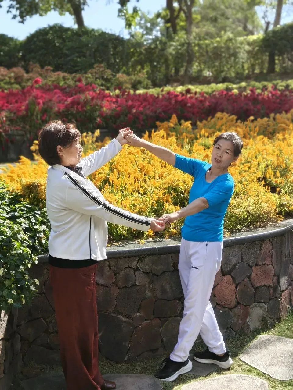 沿石阶而上,目光先被一片热烈的三角梅俘获。漫山的玫红如霞似火,铺陈在起伏的坡地上,与远处的风车相映成趣。微风拂过,花瓣簌簌飘落,铺就一条花径,让人忍不住放慢脚步,沉醉在这“刷花富贵”的盛景里。行至深处,又见一丛丛火红的鸡冠花,在阳光下肆意绽放,与一旁垂挂的金黄石斛兰交织成一幅浓墨重彩的画卷,红的热烈,黄的明媚,将冬日的植物园晕染得生机盎然。