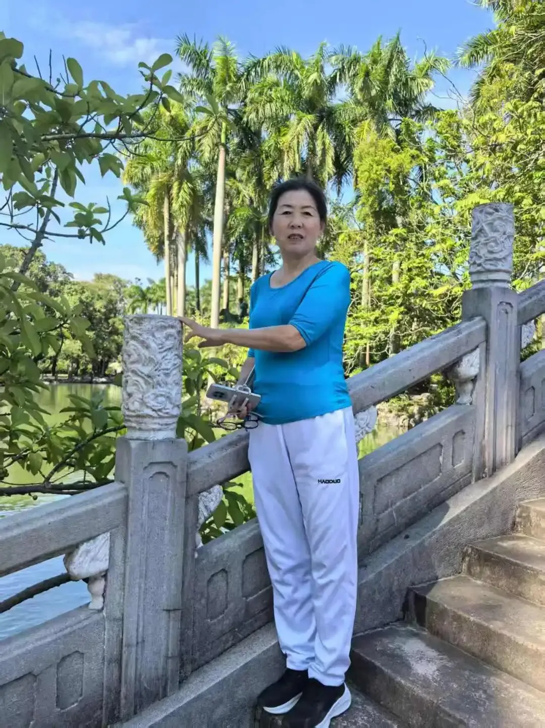 沿着湖边的石桥前行,栏杆上的云纹雕刻精致古朴,桥下流水潺潺,岸边棕榈挺拔,芭蕉舒展,一派南国风光。行至林荫道,巨大的古树枝干虬劲,交错成天然的拱廊,阳光透过枝叶的缝隙洒下,在路面投下斑驳的光影。漫步其间,听鸟鸣阵阵,闻草木清香,脚步也不自觉地轻盈起来,仿佛与这方天地融为一体。