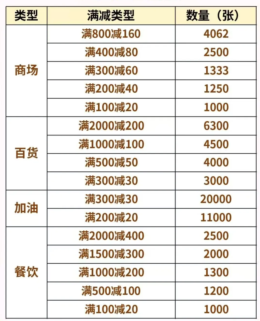 满100元减20元、满200元减40元、满300元减60元、满400元减80元、满800元减160元,满足市民日常采买和年货囤货需求。