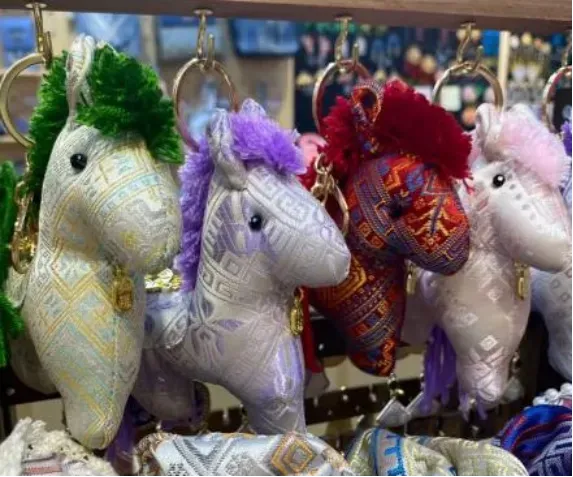 在三街两巷一家非遗文创小店前,一匹匹小巧精致的“壮锦非遗马”吸引了不少市民游客驻足观赏。这些用壮锦纹样编织的小马既有民俗韵味,又充满新春吉祥寓意。“我们特别设计了‘福袋’和‘金元宝’的装饰,寓意‘马上有钱’,祝愿大家新的一年财运滚滚、福气满满。”壮姑娘文创店的店员介绍道。