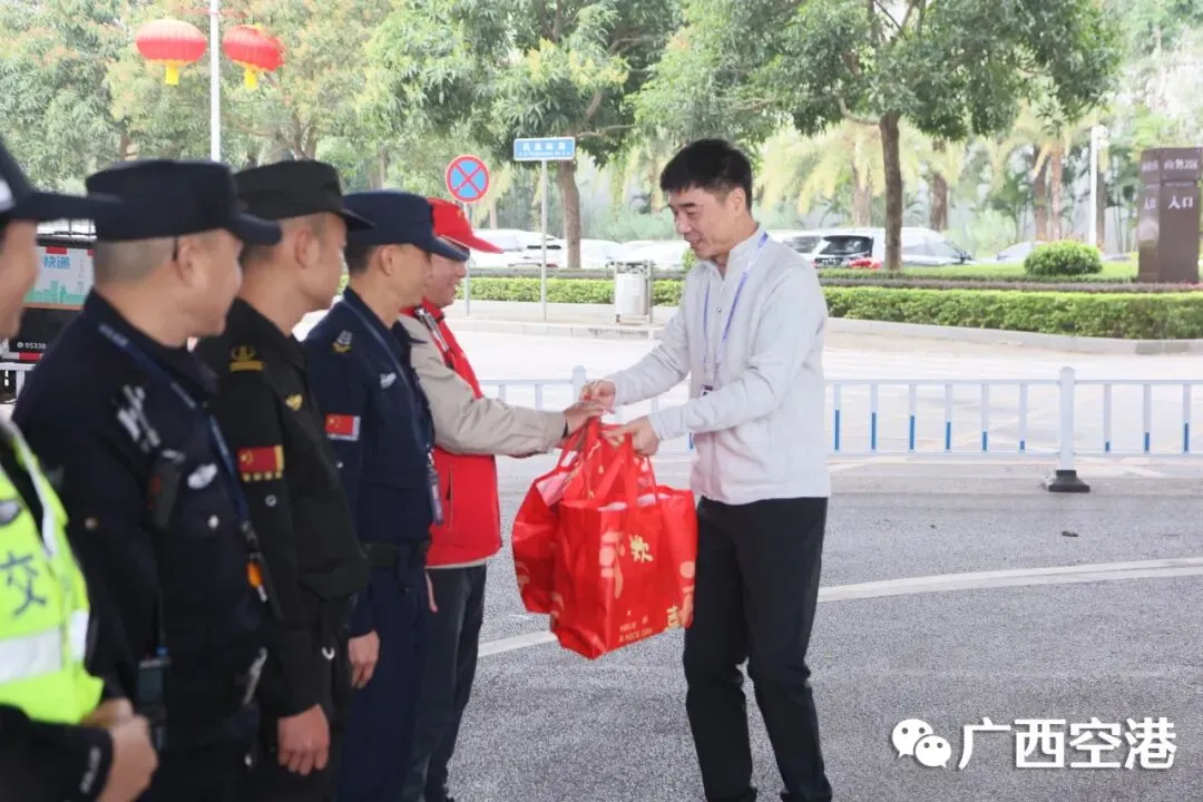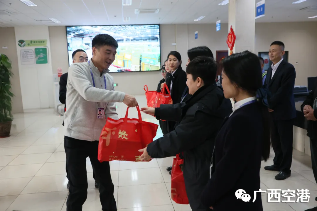 慰问中,孙辉先后到南宁机场消防东站、灯光站、T2航站楼、货站等区域,与一线干部职工亲切交流,对他们在阖家团圆的节日里,舍小家、顾大家,坚守岗位、履职尽责表示衷心感谢,并向他们送去集团公司党委的关怀和祝福。