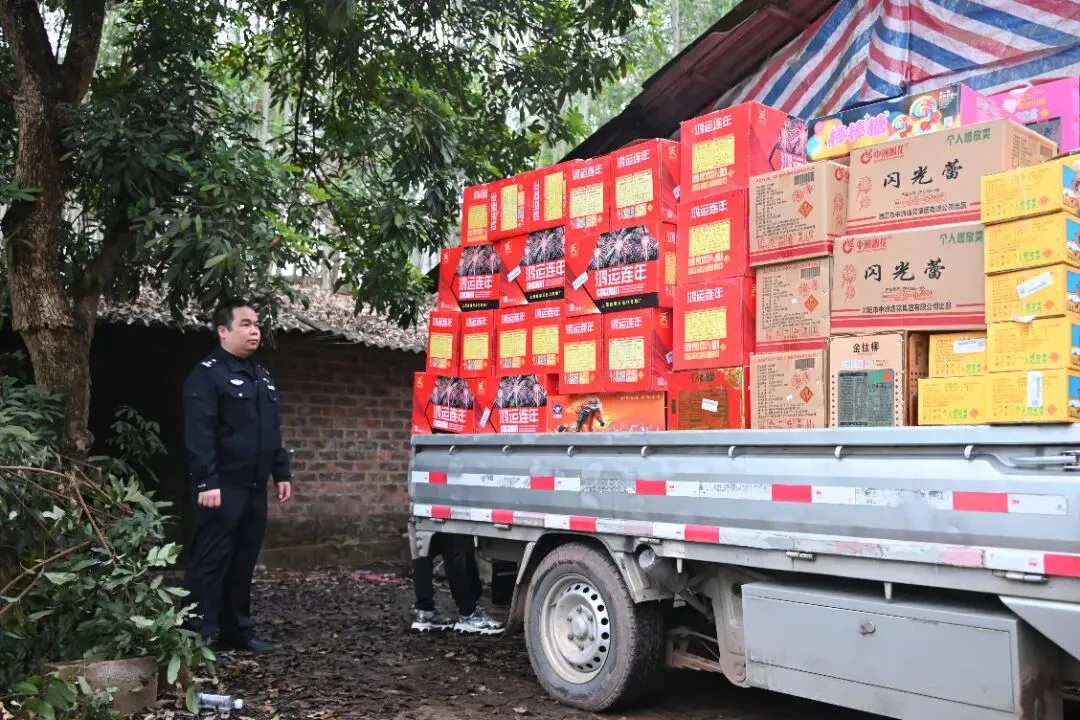 根据摸排线索,2026年2月13日下午14时许,邕宁公安分局在蒲庙镇张村村委新平坡查获三个非法储存烟花爆竹窝点,当场抓获违法当事人一名,查获952件烟花爆竹,价值约三十多万元。