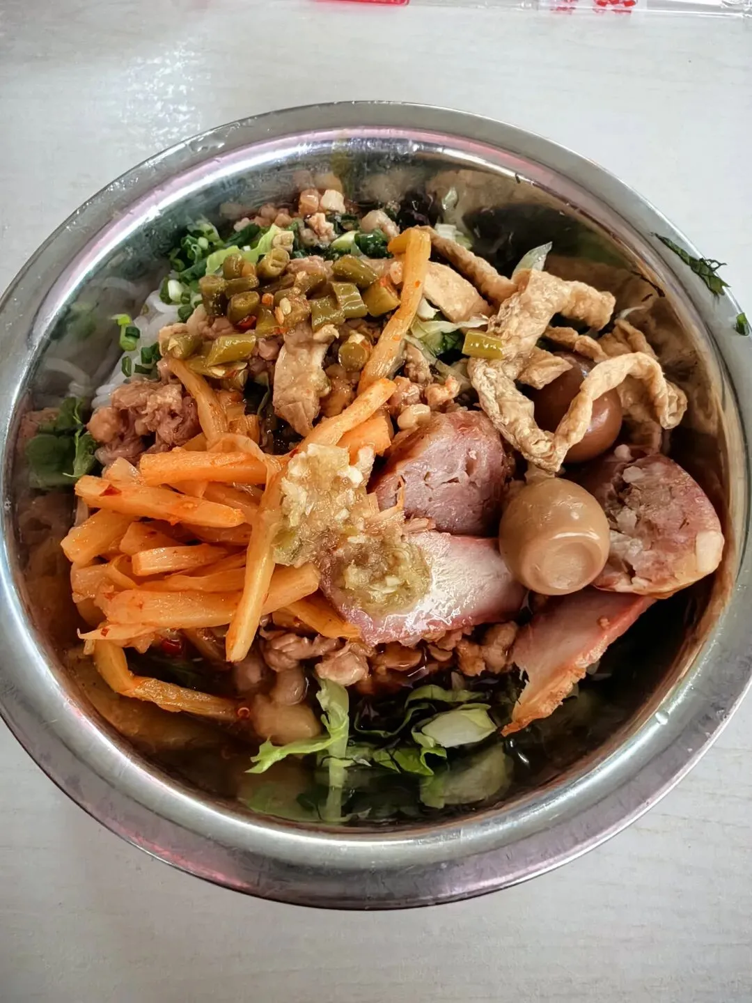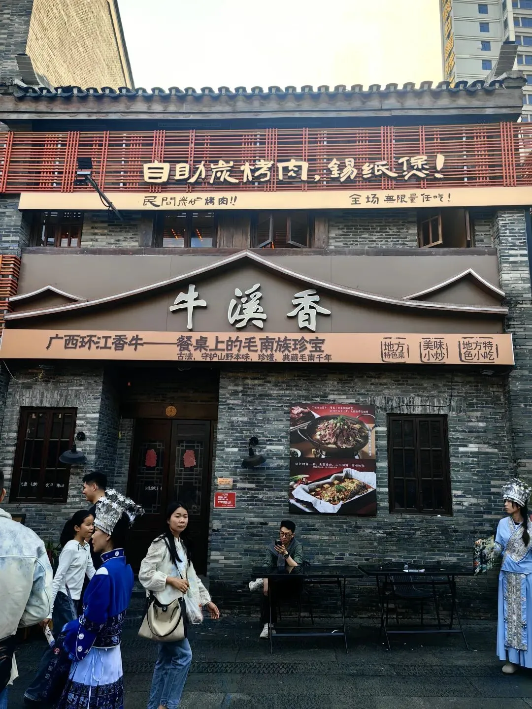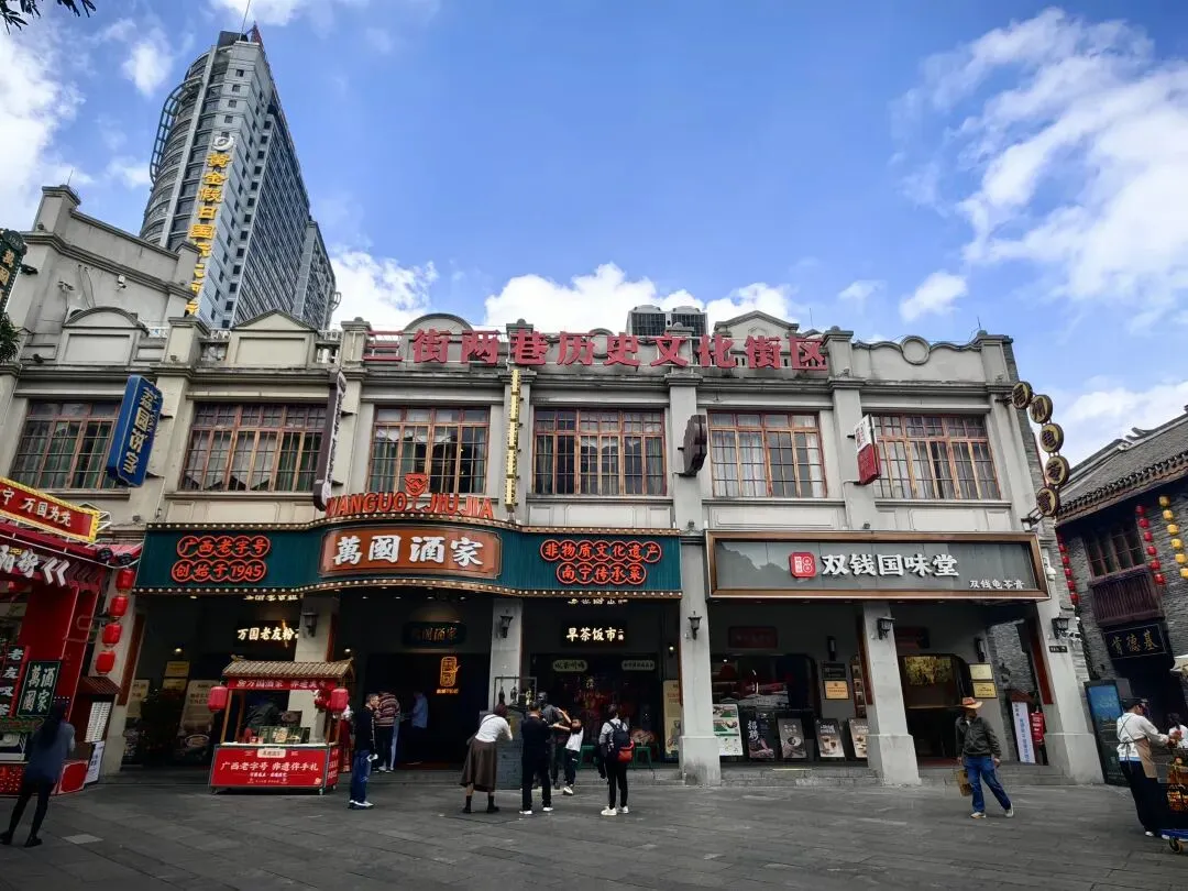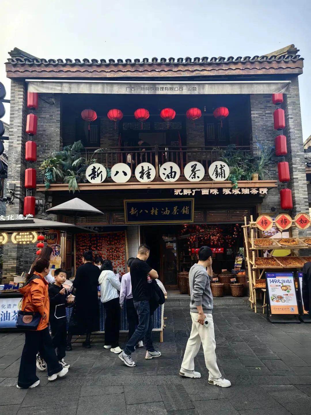 三街两巷位于兴宁区,由兴宁路、民生路、解放路三条老街和金狮巷、银狮巷两条古巷组成,历史可追溯至宋代,是古邕州商业发祥地。街区内汇集了城隍庙、新会书院、金狮巷民居群等20多处文物保护单位及历史建筑,是南宁市区唯一保存下来的清代至民国时期民居群。另外,还有人民剧院、邓颖超纪念馆这些现代历史文化纪念地。到民宿入住,休息片刻就下楼出去逛逛。街区保留了青砖黛瓦岭南建筑风貌,融合了传统商贸、市井美食与红色文化,除了一些广西当地非遗的工艺品店,更多的是一些当地有点名气的餐厅,特别是一些老字号。