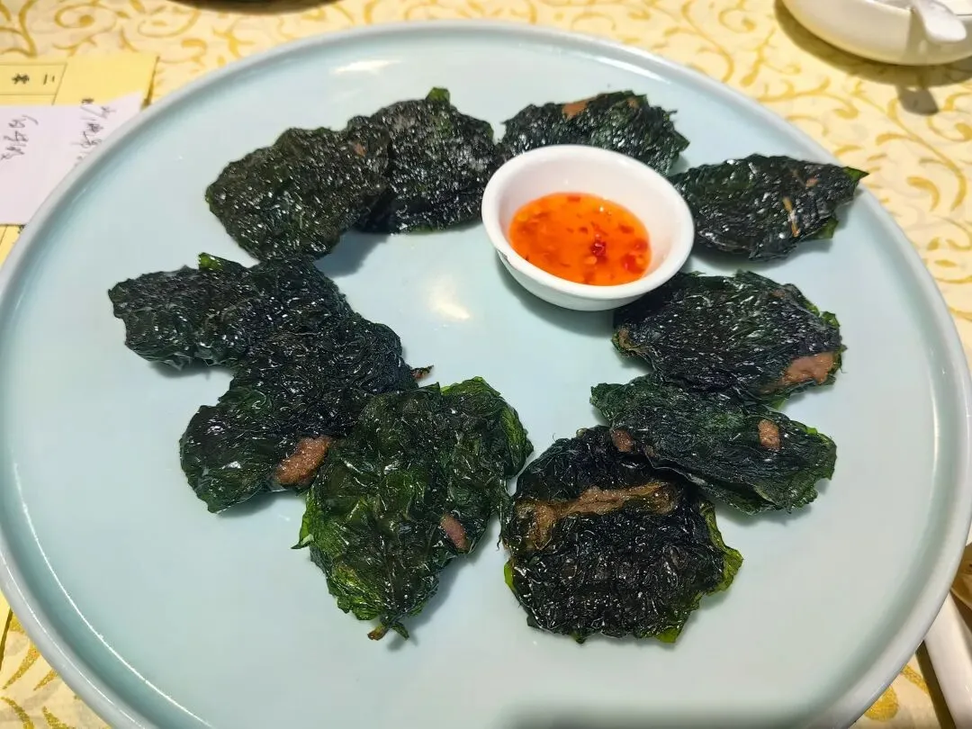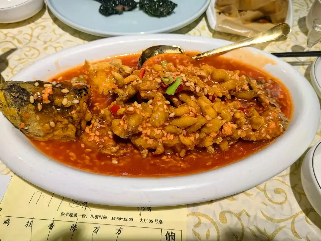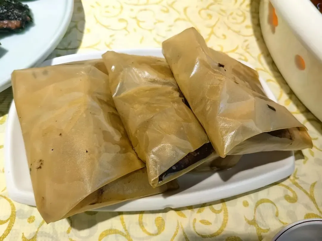 年夜晚在万国宾馆还吃到了陈皮花雕醉鸭、古法纸包鸡、香糯甜酒松子鱼、壮乡假篓牛肉酿。