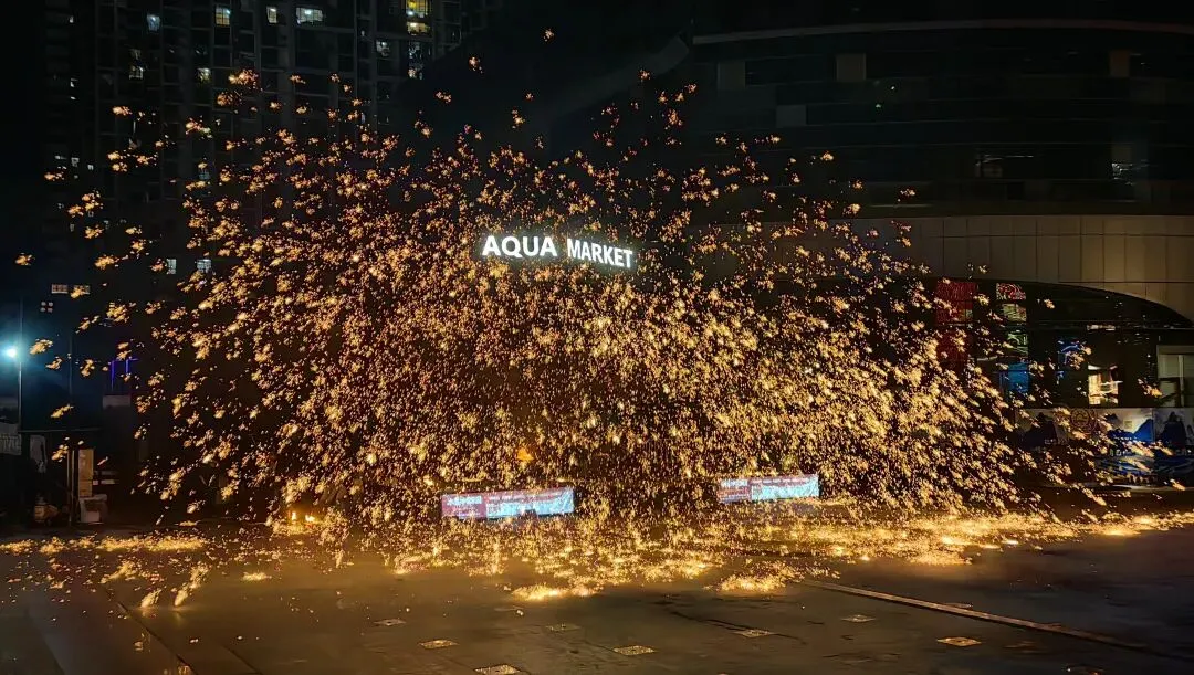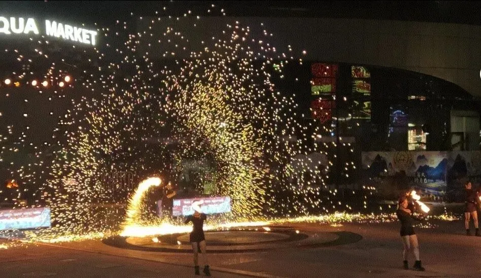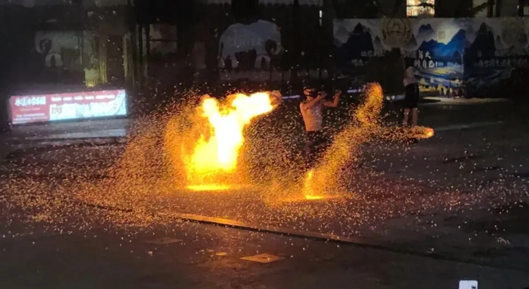 昨晚除夕夜,我们到邕江边的水漾集市去看了南宁火秀(下图1-3)和打铁花表演(下图4-5),还是非常震撼的。特别是打铁花表演,去年夏天在忻州古城就想看,结果没有票了,这次终于如愿,和想象的很不一样。今天(正月初一)上午还看到了舞狮表演和壮族歌曲贺年演唱,增添了许多新年热闹的气氛。住在三街两巷还有一个福利,斜对面就是中山街夜市,就在钟鼓楼(下图1)的旁边。到的那天晚餐后去逛了一下,全国的小吃几乎都汇集到了这里,可是小胃里已经没有空间了。这几天要吃的东西也太多了,也没有空再光顾那里。住在三街两巷的青砖黛瓦间,推窗即是花灯满街的春节氛围与邕城烟火,下楼便是沸腾的老友粉香和炮仗声,因此感受了左手历史、右手烟火的独特年味。