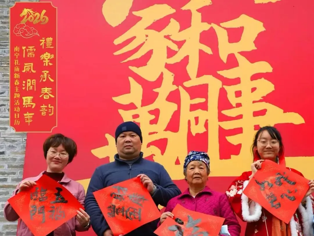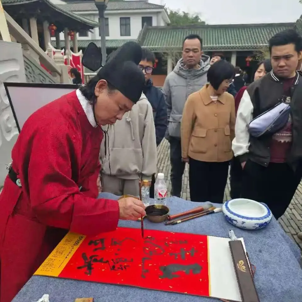 明伦堂广场上人头攒动,书法名家们现场挥毫泼墨,为市民们书写福字。游客们纷纷参与互动,体验书法的魅力,领取这份承载着新春祝福的文化礼物。一张张福字,不仅传递了温暖,更寄托了人们对新年的美好期许。