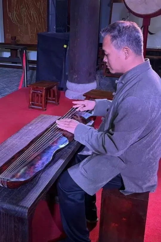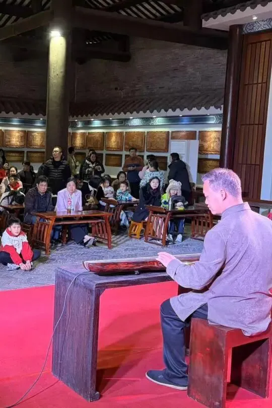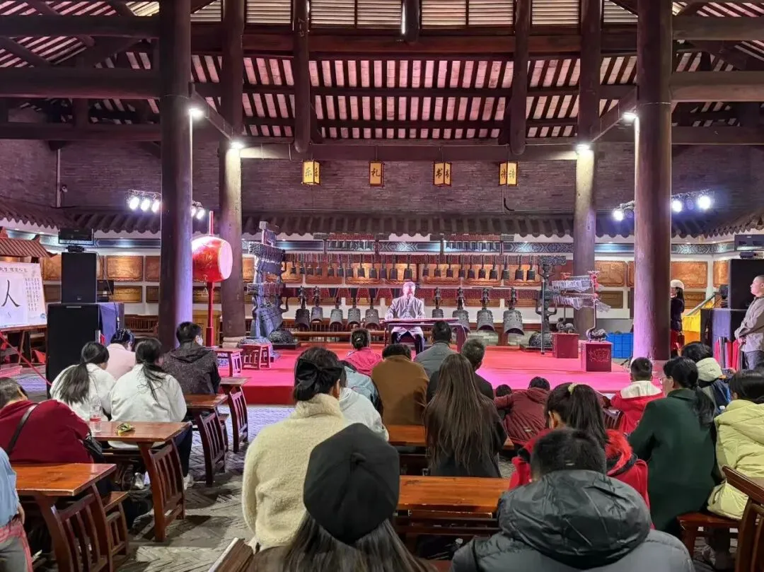 午后,崇圣祠内古琴声声,丝桐雅乐悠扬响起。琴筝和鸣,仿佛穿越时空而来,让游客们在聆赏中感受到了传统文化的韵味与魅力。这场古琴演奏不仅为庙会增添了一份高雅的艺术氛围,也让人们的心灵得到了净化与升华。