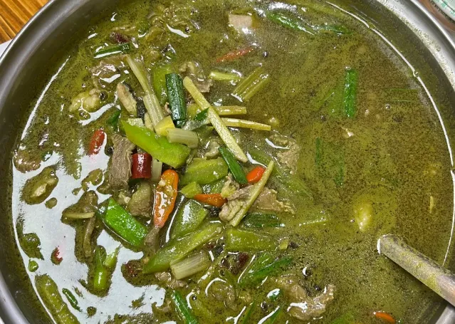 早餐得是一碗“百草汤”。其实就是牛杂汤,但关键在那个“胆”。牛吃百草,胆汁入汤,第一口微苦,那是草木的魂,咽下去后回甘,胃里暖烘烘的。汤一喝,人就醒了。肉是现切的,嫩得弹牙,配上特制的蘸水,不是腥膻,而是鲜得有层次。