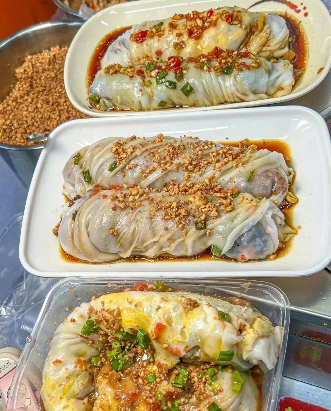 我点的是加蛋版本 , 强烈建议你们也这样点 , 蛋液裹在馅料里面 , 吃起来多了一层嫩滑的口感 , 层次一下子就丰富起来了。 除了加蛋的 , 还有肉杂、玉米肉、豆角肉这些口味 , 我每种都想尝一遍 , 真的很难选。
