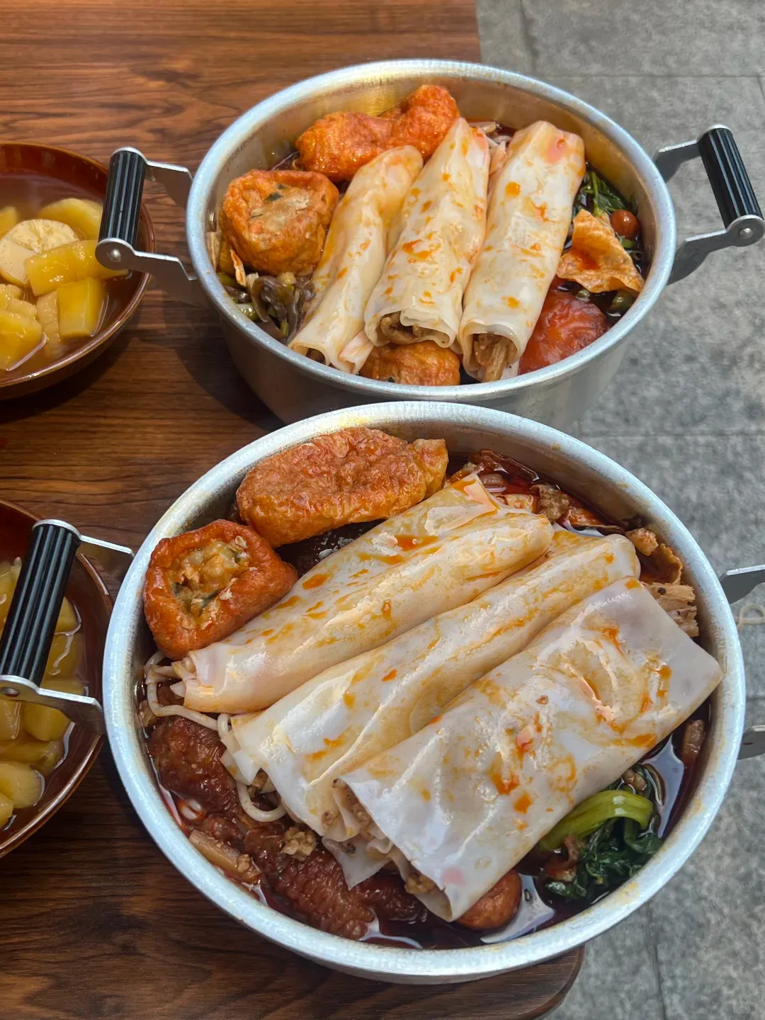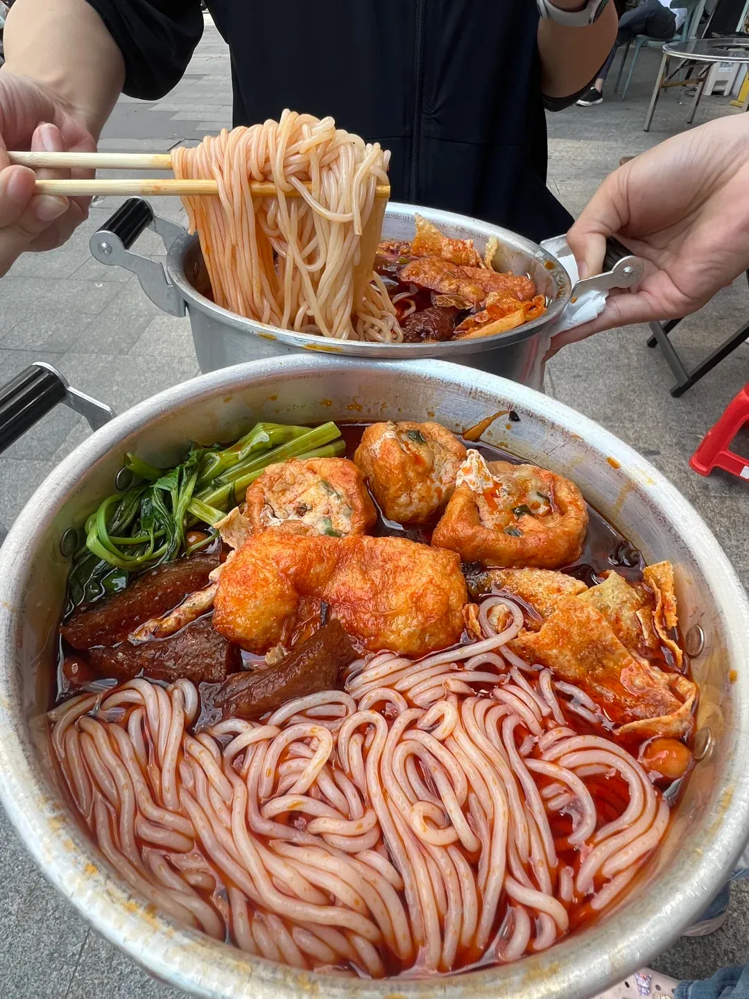 虽然是路边不起眼的小店,但这味道真的是绝绝子!刚端上来的时候我都惊呆了,这老板也太实在了,直接用那种老式的不锈钢双耳锅来装粉,满满一大盆,看着就特别有食欲,超级接地气。