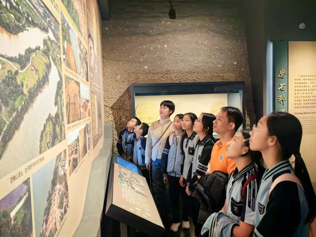 “我想先看壮锦展区”“铜鼓要放前面”…… 孩子们指尖轻划间,一条条独具特色的数字研学路线应运而生。大家沉浸式观展、实时打卡闯关、云端交流感悟,在主动探索中领略八桂大地的文化魅力。科技与文化在此刻交融碰撞,让课堂有了温度与活力,文化传承的种子在孩子们的主动探索中悄然萌芽。