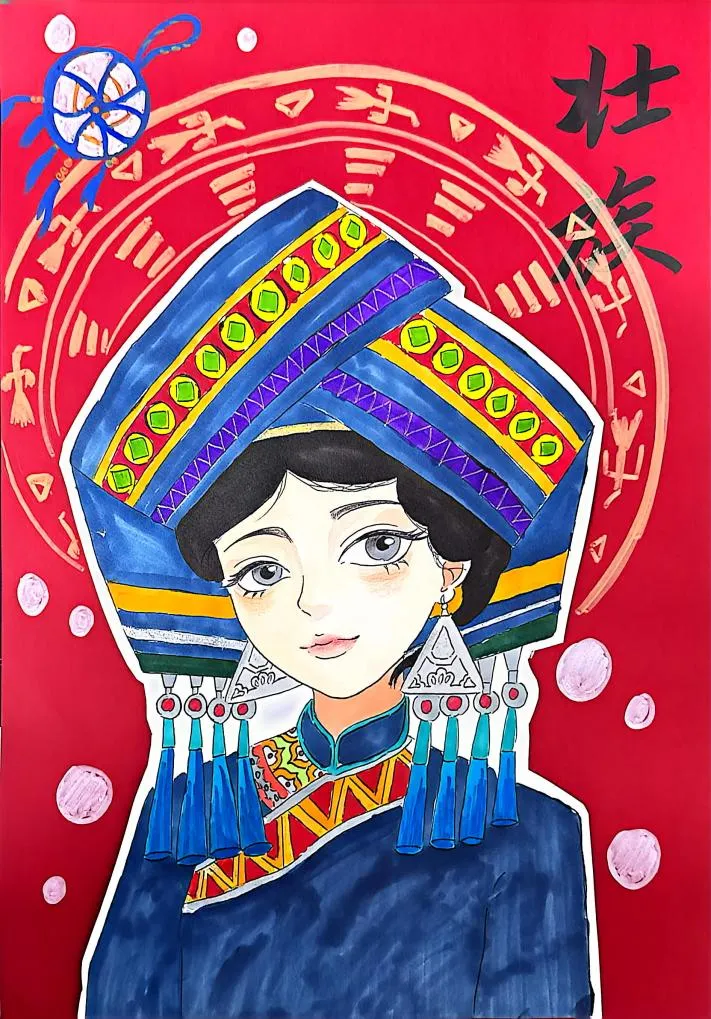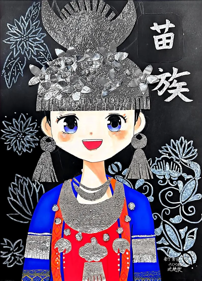 研学活动结束后,两校联动开展 “我手绘我心” 主题创作活动。两校学子以壮锦纹样为灵感,精心绘制《同心共筑中国梦》装饰画。一幅幅稚拙而真诚的作品,既是云游研学的收获与沉淀,更是中华民族共同体意识在童心生根发芽的最美见证。