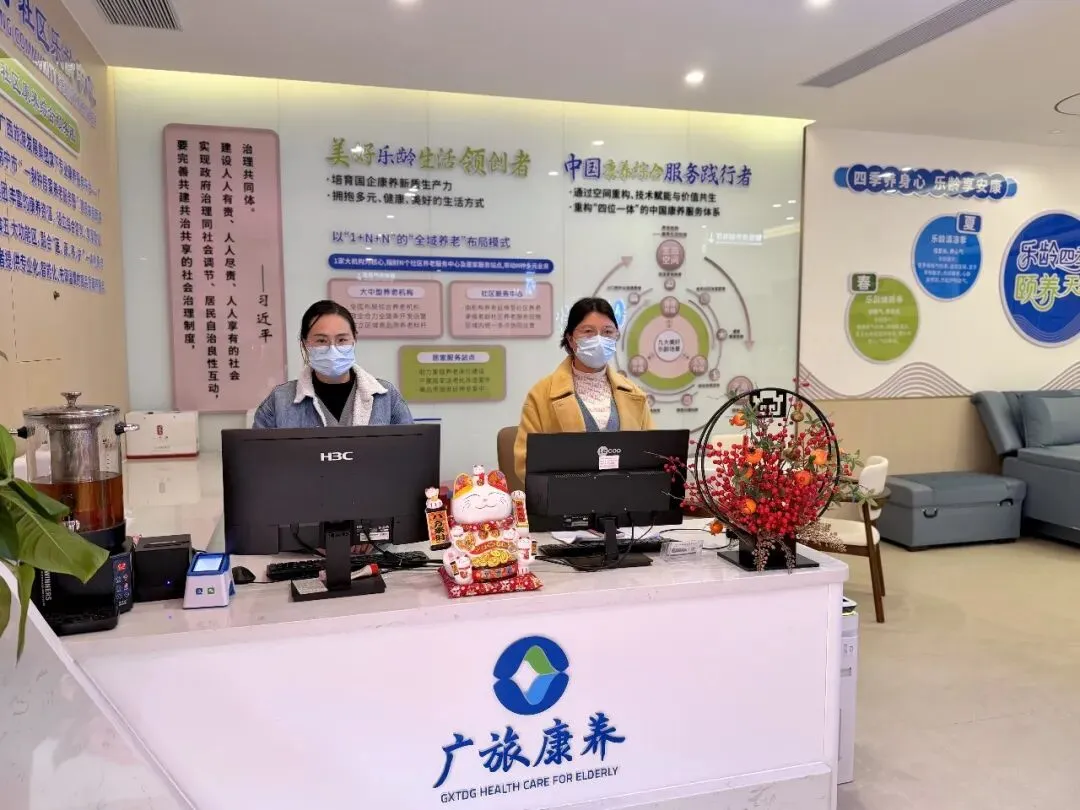 春节期间,广旅南宁康养中心医护人员24小时在岗,确保入住长者的健康监测与日常照料。我们特别加强了节日期间的巡访频次,每位护理人员都坚守岗位,用专业和爱心守护长者的安康。
