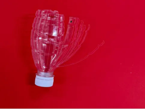 步骤二:用剪刀把瓶子上半部分剪出条状